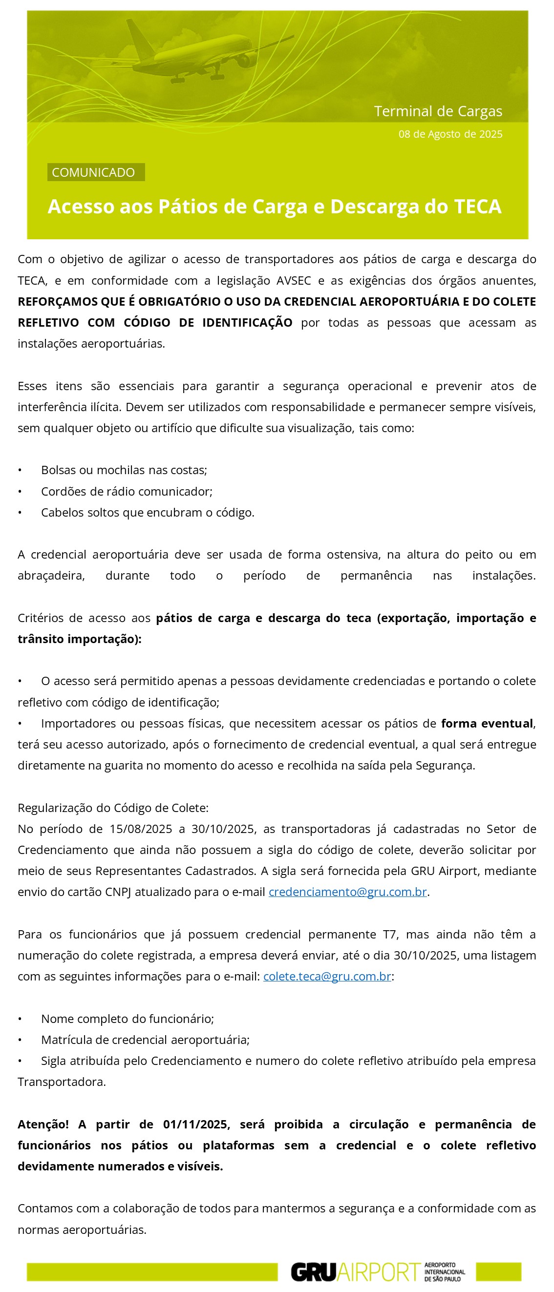 Para esses casos, temos à disposição serviços específicos sob demanda prestados nas diversas áreas do Terminal de Cargas.